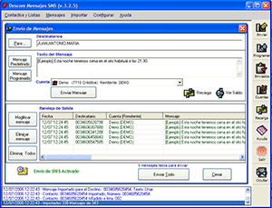 Permite mandar sms masivamente y agendar numeros.